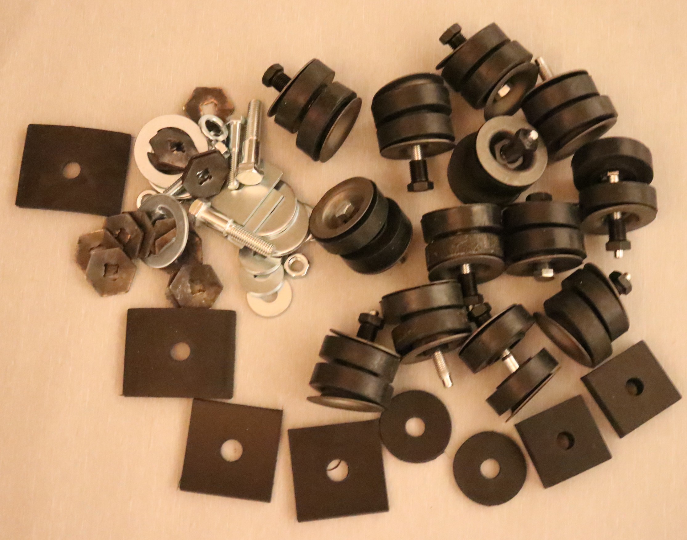 Komplett sats med karosserigummi, bultar, brickor, muttrar etc.
