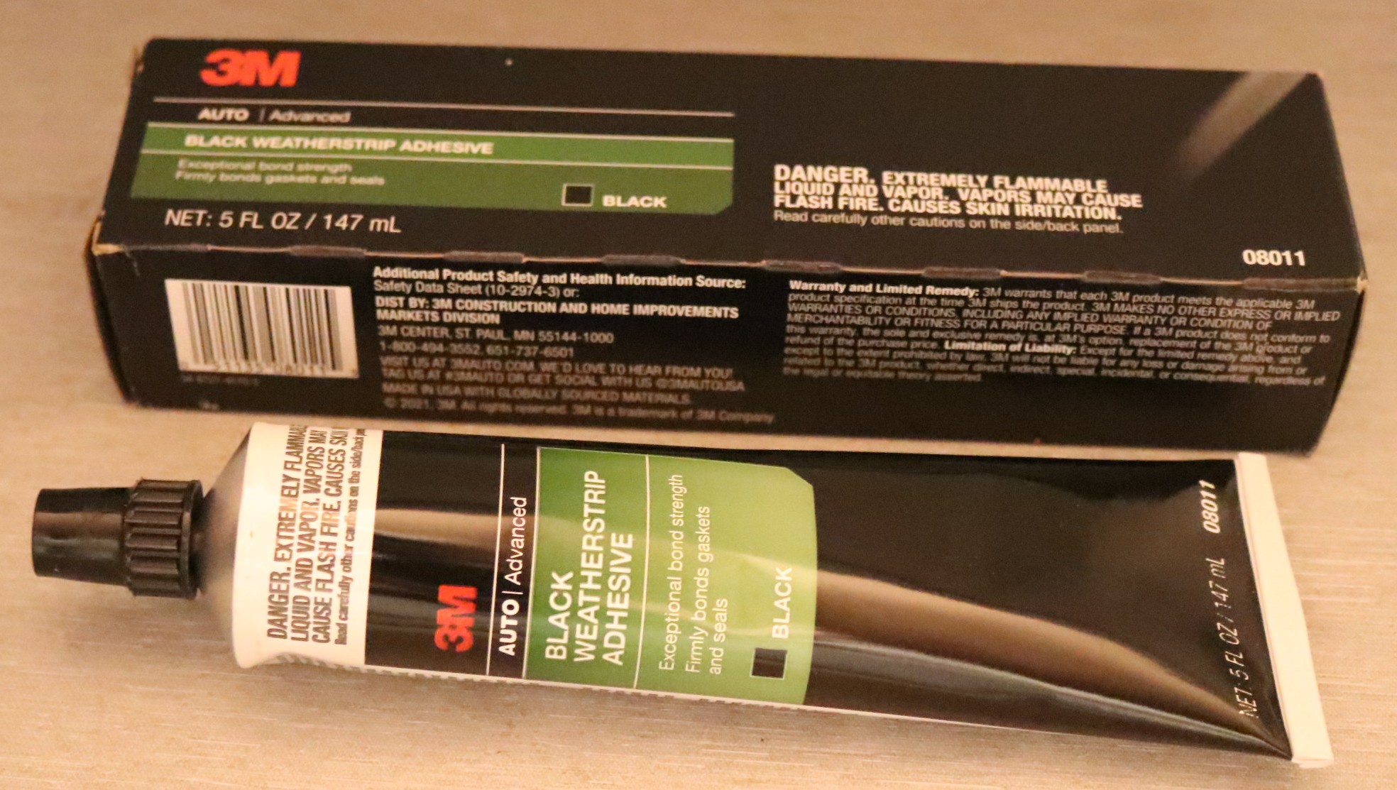 Svart lim för gummilister.